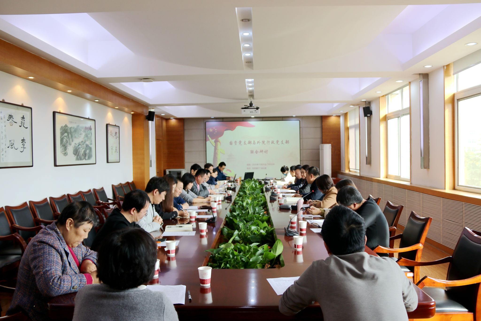 为全面落实新时代党的建设总要求,深化党建与业务融合互促,推动机关党建与教学科研单位党建同频共振、协同发展,10月31日下午,国资处党支部与外院行政党支部在校务楼511会议室以结对共建为纽带,对集中大课开展联合研讨。会议由外院行政党支部书记鲁燕主持,两支部全体党员参加。